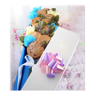 Instead of roses, your recipient will discover a stunning display of our signature 1/4 lb gourmet cookies, each individually wrapped and perched on a long stem. Arriving in an elegant rose floral box, these "blooms" offer more than just beauty—they deliver the golden-crisp edges and soft, buttery centers that make Cookie Garden famous.